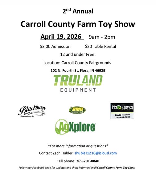 Farm toy enthusiasts from across the region are invited to attend the 2nd Annual Carroll County Farm Toy Show on Saturday, April 19, at the Carroll County Fairgrounds.