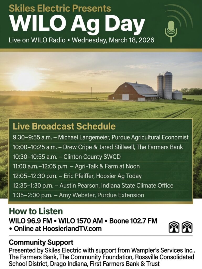 WILO and Hoosierland TV Hosts Melissa Miller and Adam Shanks interviewed leaders in Indiana Agriculture from 9:30 AM to 2 PM March 18, 2026.