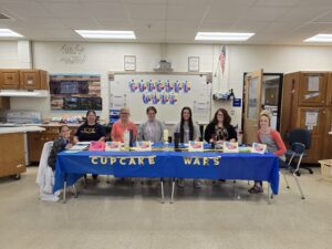 Frankfort High School Culinary Students: Students spent their last couple weeks of school preparing for finals by completing study guides and presenting culminating projects. It is safe to say that one of the most exciting projects involved baking! The culinary program created their own version of Cupcake Wars. Second Year Culinary Pathway students learned about different types of cakes and frosting techniques and then were challenged to incorporate specific flavors and themes into the layout and display for their cupcakes. Guest judges (pictured below) came to the competition and presented a trophy for the winner. While it wasn’t an easy project, that final sounds like a piece of cake!