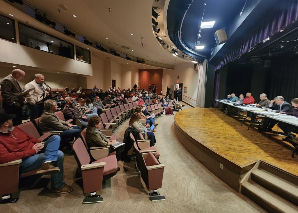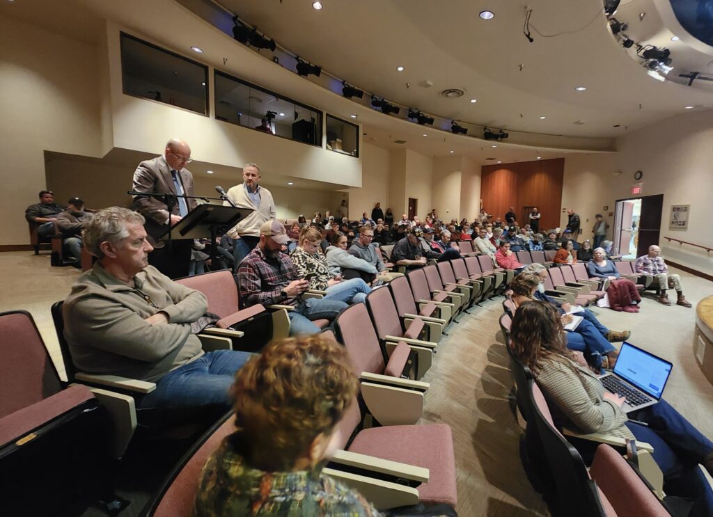 In a four and a half hour meeting at a full Skanta Theatre, public comments were heard after the Area Plan Staff report led by Liz Stitzel said that all five findings for the process were met. Stitzel’s extremely detailed and lengthy report did not give an unqualified positive recommendation to the board but specified 14 items that should be addressed before the staff report would give a favorable recommendation to the board. The board made these 14 recommendations part of the motion which passed 5-0 with two Area Plan Commission members abstaining and not present for the meeting.