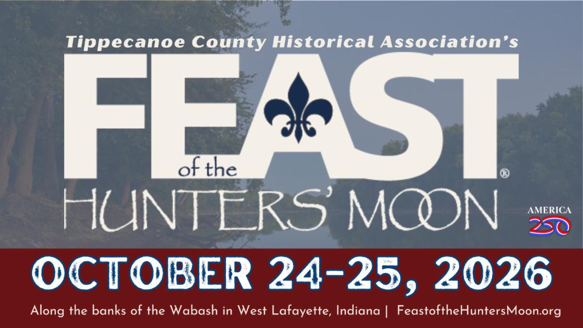 The Tippecanoe County Historical Association is proud to announce the dates of the 59th annual Feast of the Hunters’ Moon festival, to happen in Fall of 2026. The festival will take place October 24th and 26th, 2026 at Fort Ouiatenon Historic Park in West Lafayette, Indiana.