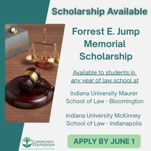 The Forrest E, Jump memorial Scholarship is available to law students enrolled at IU Bloomington or Indianapolis Schools of Law. This Scholarship is for any year law student; however, they must apply by June 1, 2025.