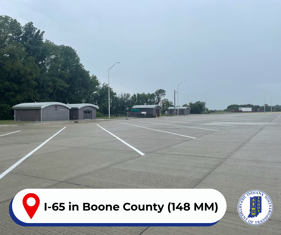 The Indiana Department of Transportation announces the opening of newly constructed Lebanon truck parking facilities on I-65 northbound and southbound near mile marker 148 in Boone County.