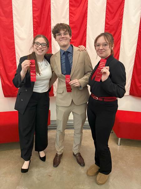 The 2025 Stinger Speech Team will continue with their competitions this year as Washam, Black and Thompson represent Rossville at the ISSDA State Tournament this Friday, March 7 at Fishers High School.