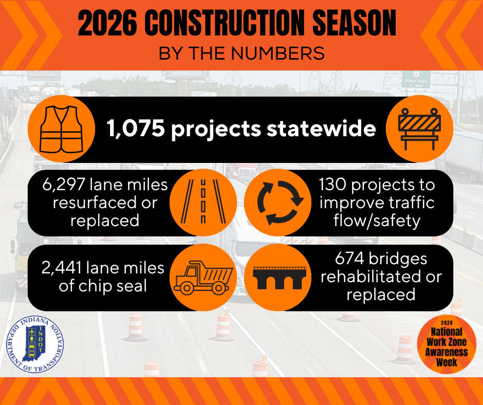 “Drivers across the Hoosier State will encounter orange barrels and active work sites this spring and summer,” said Governor Mike Braun. “Making improvements to our state’s transportation infrastructure is critical to boosting economic growth and quality of life, and it takes all of us slowing down and paying close attention to ensure safety for everyone on the road.”
