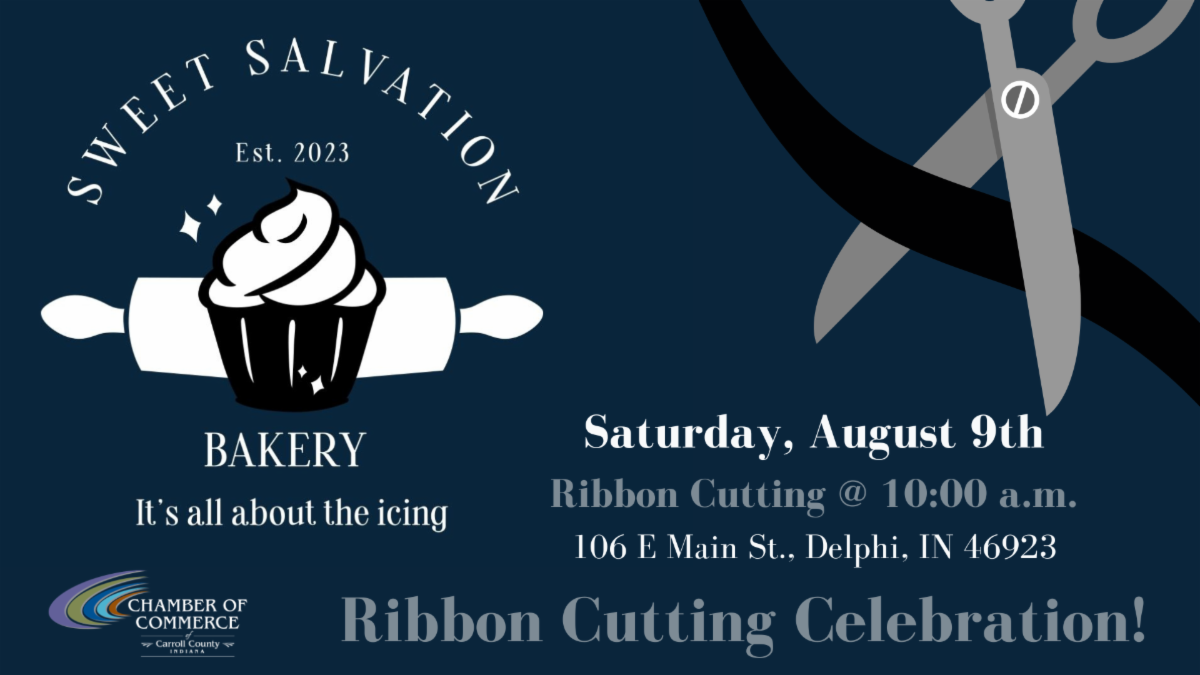Sweet Salvation Ribbon Cutting August 9th August 5, 2025 Melissa Jacobs Local News Sweet Salvation, located at 106 E. Main Street in Delphi, will hosting a ribbon cutting ceremony on August 9th at 10am.