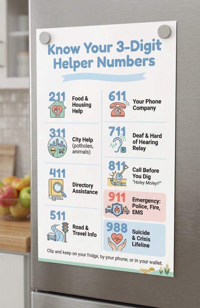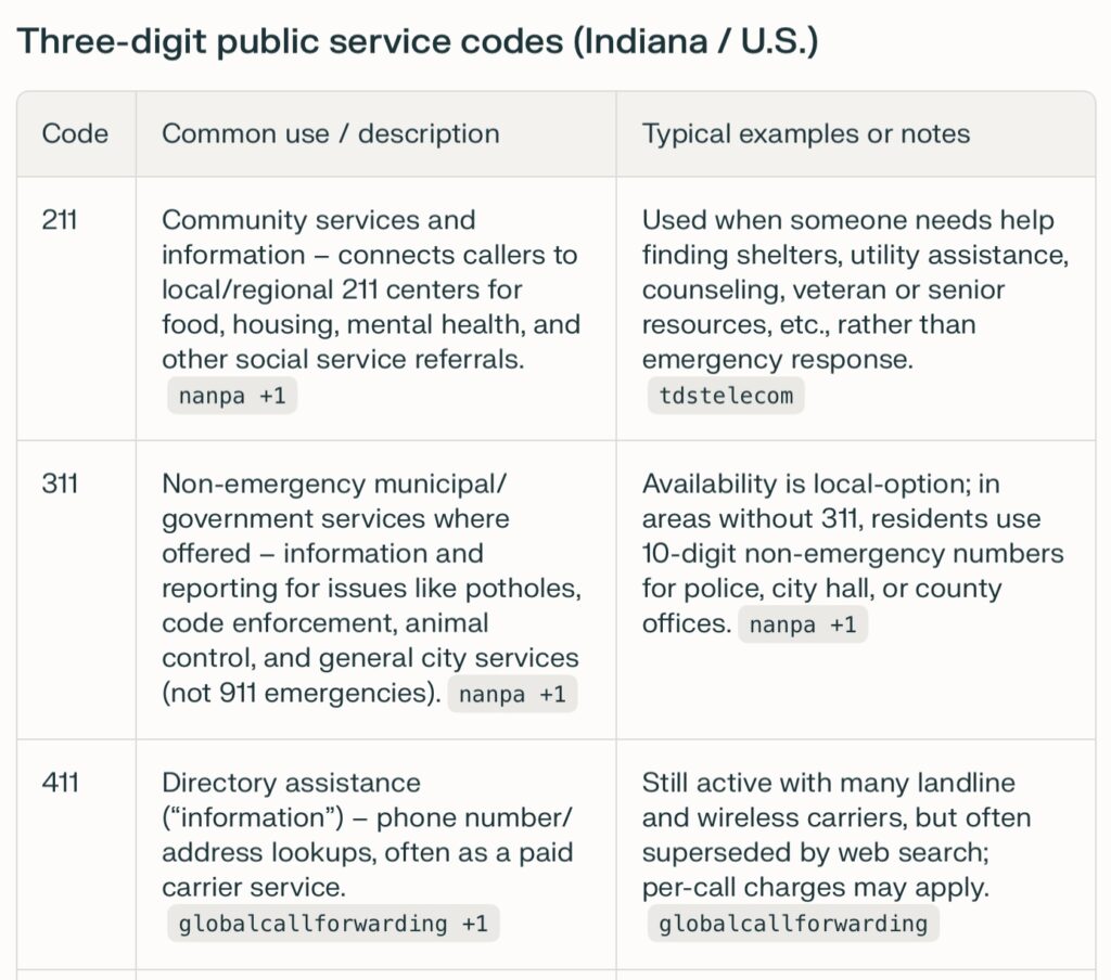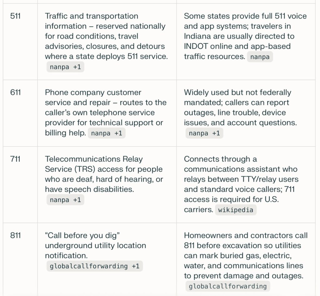 Ever wonder what all the three-digit public service codes are on you cell phone? Here is a handy table and a poster to help you remember what all these three digit codes can do for you and who you can talk to quickly.