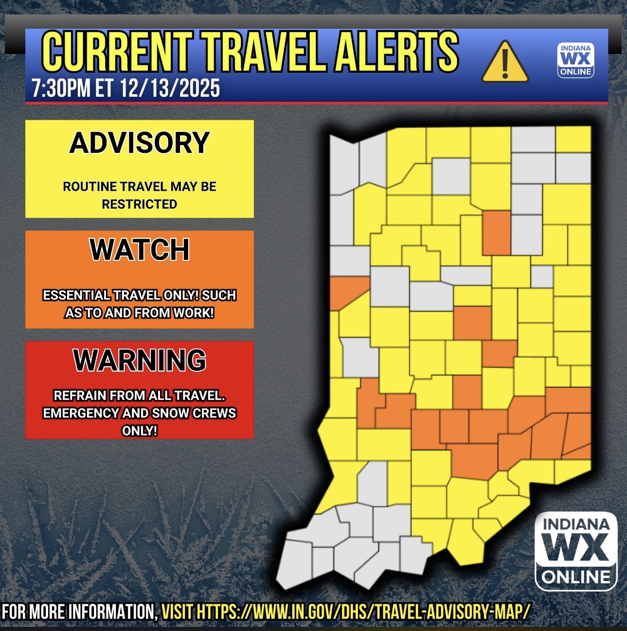 Travel Advisories across Indiana Saturday, December 13th at 7:30 PM December 13, 2025 Melissa Miller Local News Screenshot
